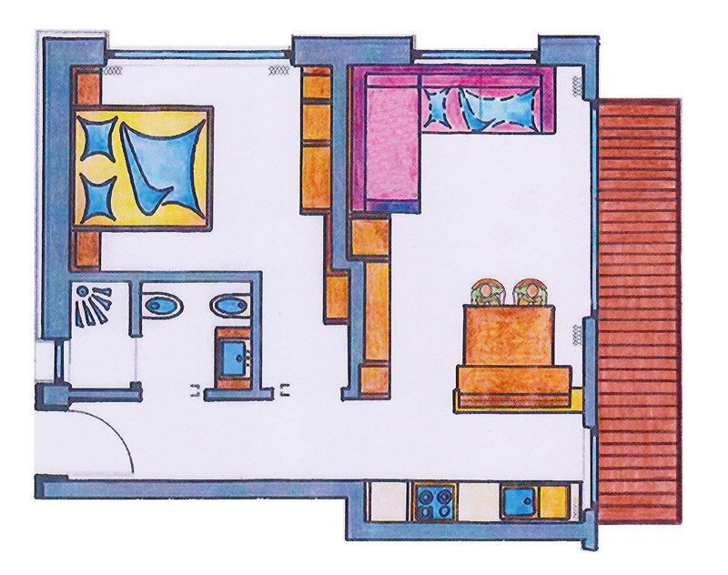 • TV-Sat, Internet WI-FI, cassetta di sicurezza, biancheria da letto, da bagno e da cucina completano la dotazione degli appartamenti.