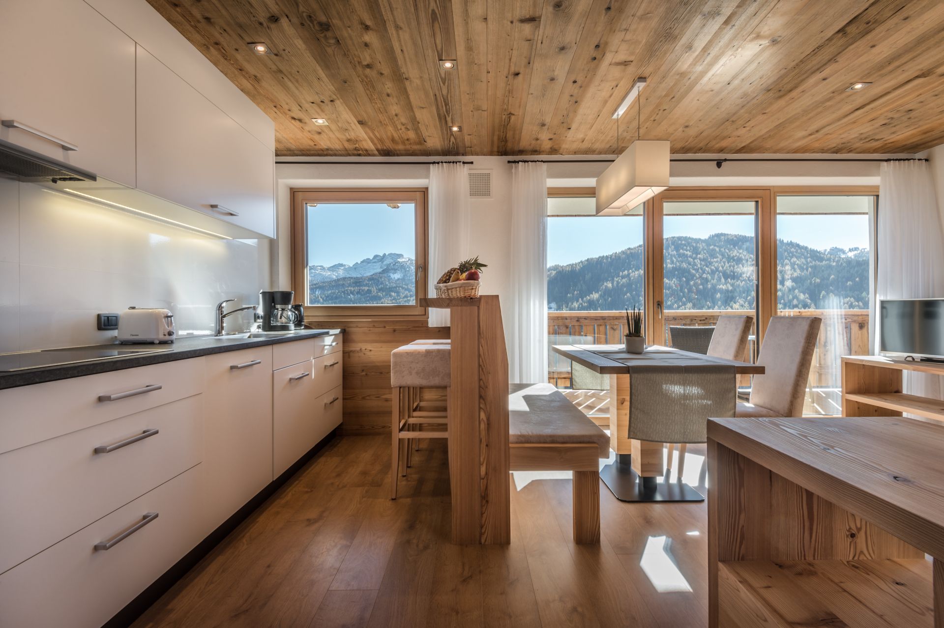 Il nostro Chalet di montagna che sovrasta il piccolo paese di San Cassiano offre appartamenti esclusivi che sanno coniugare modernità con gli elementi delle tradizioni ladine. Gli arredi in materiali naturali e le ampie vetrate panoramiche che portano luce negli interni creano un contatto diretto con le Dolomiti. Ambienti spaziosi e accoglienti in materiali naturali, per sognare, rilassarsi e sentirsi a proprio agio.